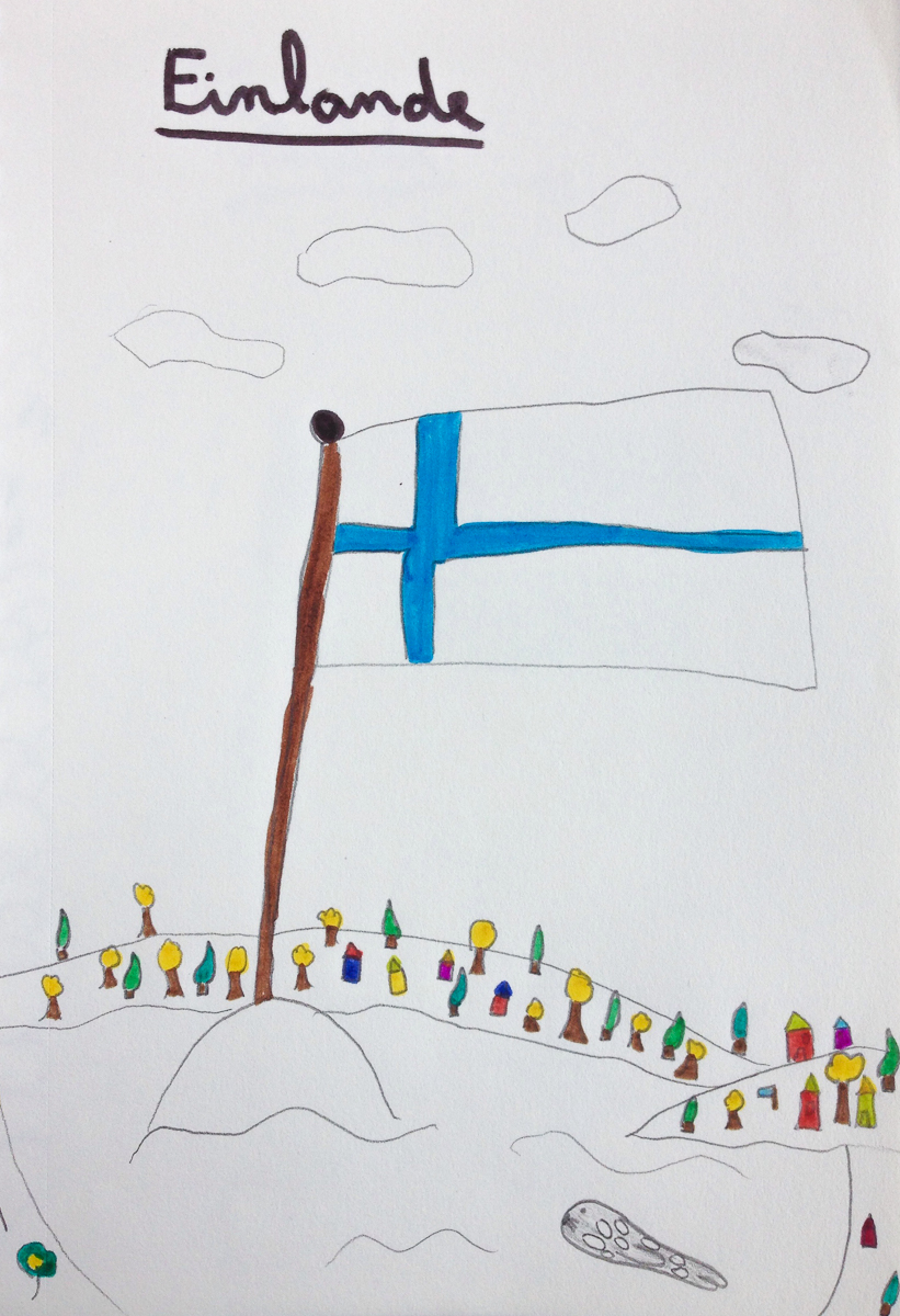 Animaux et décors dessinés, découpés et collés par Annika et Mila sur le bout de petites branches pour les besoins d’un spectacle de marionnettes, improvisé lors d’un bivouac en forêt finlandaise.
