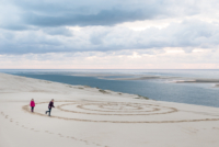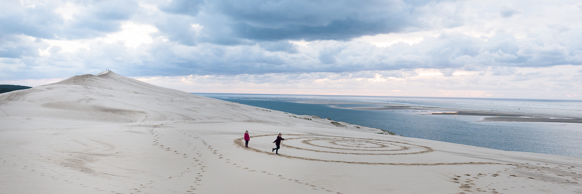 Le vent a failli nous pousser vers Prague ou l’Italie, mais finalement nous suivons le couloir de migration des oies cendrées et des grues, qui nous accompagnent depuis la Laponie, pour traverser la France vers le sud-ouest ! Notre deuxième grande boucle du voyage passera par l’Espagne, le Portugal et le Maroc ! En attendant, une nouvelle surprise attend les filles : la dune du Pyla …