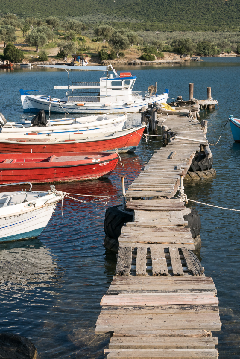 Niko nous dégote un super bivouac en bord de plage, près de Sourpi. Fréquentée uniquement par les pêcheurs et familles du coin, elle est vraiment tranquille et même équipée de petits parasols et de douches. Mais surtout, cette plage de sable est nichée au creux d’une superbe baie, entourée de collines et d’oliviers avec seulement quelques maisons et quelques bateaux… Le luxe selon nos critères !